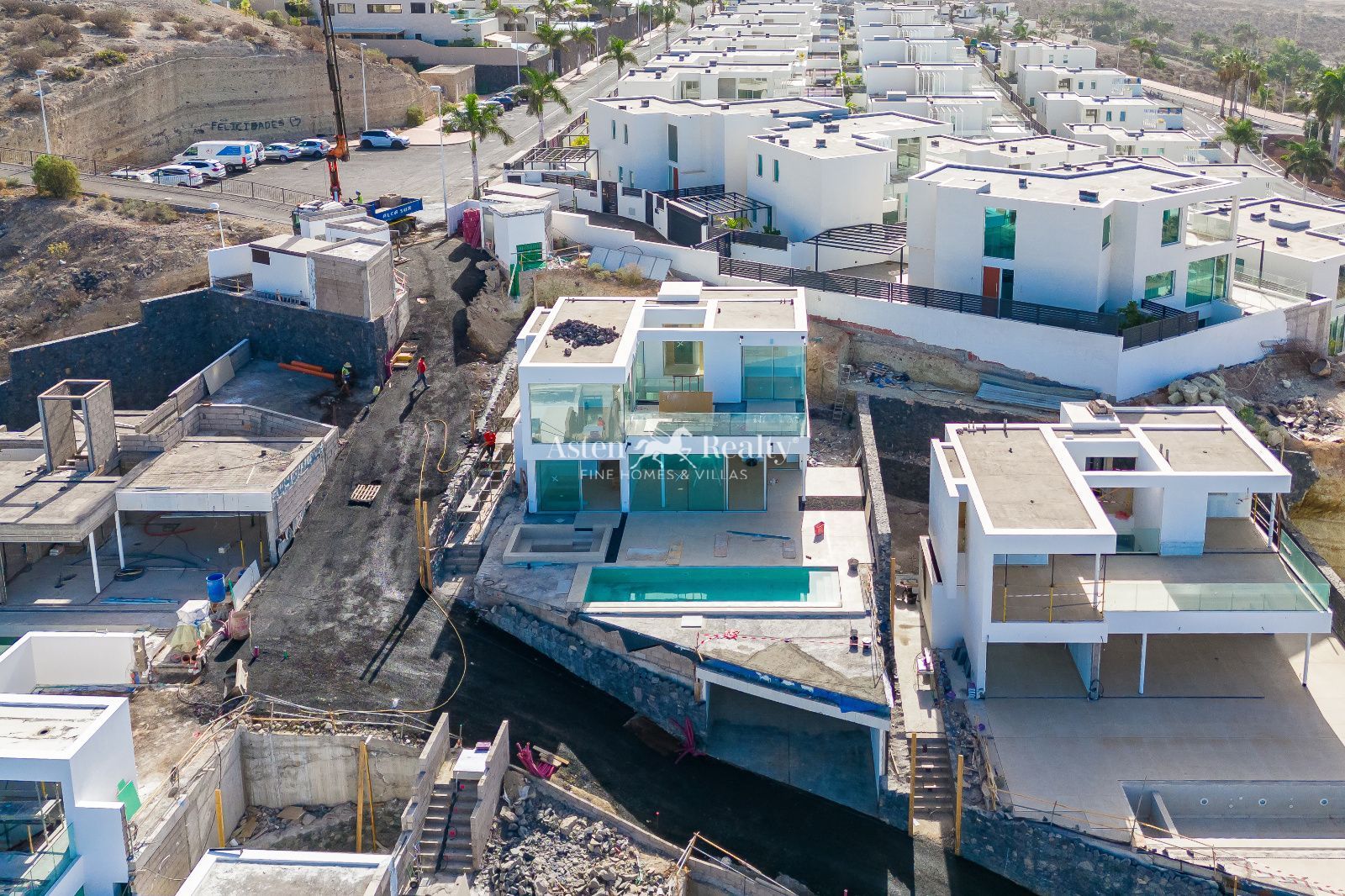 Últimas villas en venta de Siam Gardens en Caldera del Rey. En un lugar privilegiado por encima de Siam Park en el sur de Tenerife, El complejo Siam Gardens se encuentra a pocos minutos de toda lo necesario - centros comerciales de lujo, campos de golf, el paseo marítimo y las playas más bonitas de la isla. Aprovecha de unas vistas espectaculares a la costa de Tenerife y a su hermana pequeña La Gomera. Aquí ninguna puesta de sol es como la otra. Disfruta los atardeceres en su piscina “infinity” o con sus amigos de barbacoa en la terraza. El complejo se constituye de 24 villas. La localización del complejo está en una zona alta con la especial arquitectura de las villas, cada una de ellas incrustada de tal manera que todas tienen vista al océano, isla La Gomera y un atardecer con las luces de Playa de Las Américas.