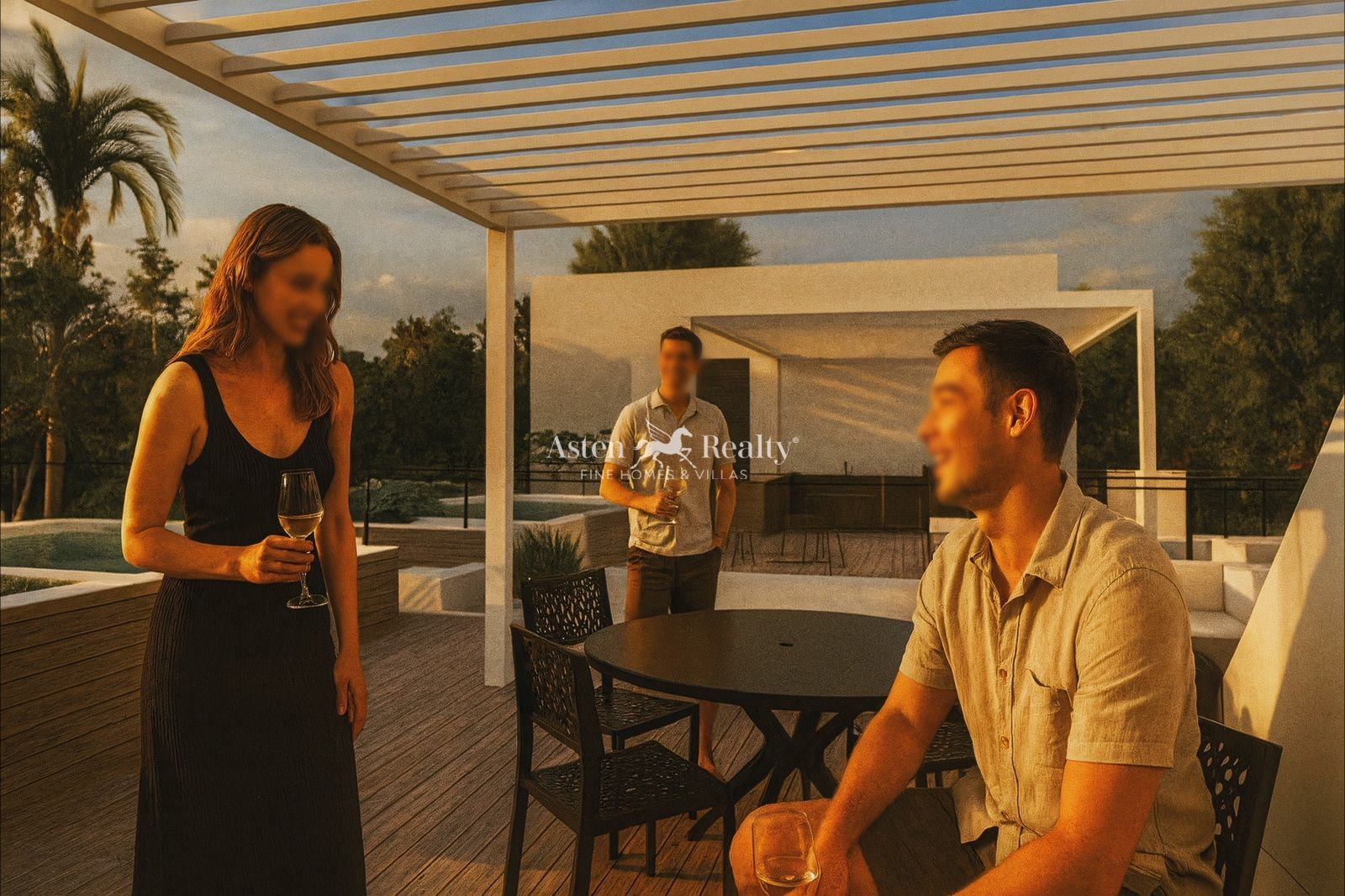 - Posibilidad de unión para crear una villa premium, ya que pueden unirse para formar una gran villa de lujo, gracias a su distribución adaptable y al hecho de que la construcción aún no está finalizada. Precio total por ambas viviendas unidas: €1.498.000.