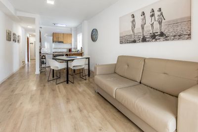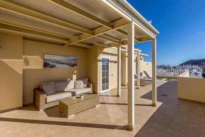 Die Wohnung zeichnet sich durch eine hervorragende Kombination aus Innen- und Außenbereichen aus. Vom Inneren der Wohnung führt eine Treppe auf eine großzügige, 46 m2 große private Dachterrasse – ein perfekter Ort, um das ganze Jahr über die Sonne zu genießen, einen Chill-out-Bereich einzurichten oder Mahlzeiten im Freien zu genießen. Auf dieser Terrasse befindet sich zudem ein separater Waschraum, der für zusätzlichen Komfort sorgt. Das Wohnzimmer verfügt ebenfalls über eine eigene Terrasse, ideal für entspannte Momente im Alltag.